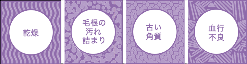 - 毛穴の汚れ:皮脂や整髪料は,日々のシャンプーだけでは取り切れません