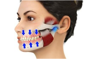 - 歯ごたえのある硬いものを好んで食べる方や,歯ぎしり(ブラキシズム)など,無意識に咬みしめて筋肉が過度に使われる状況の多い方は,咬筋が発達してきます。咬筋が発達すると,歯の摩耗(すり減り),インプラントや人工物の破損,顎の痛み,ストレス,片頭痛,肩こり,エラ張りなどの原因になります。