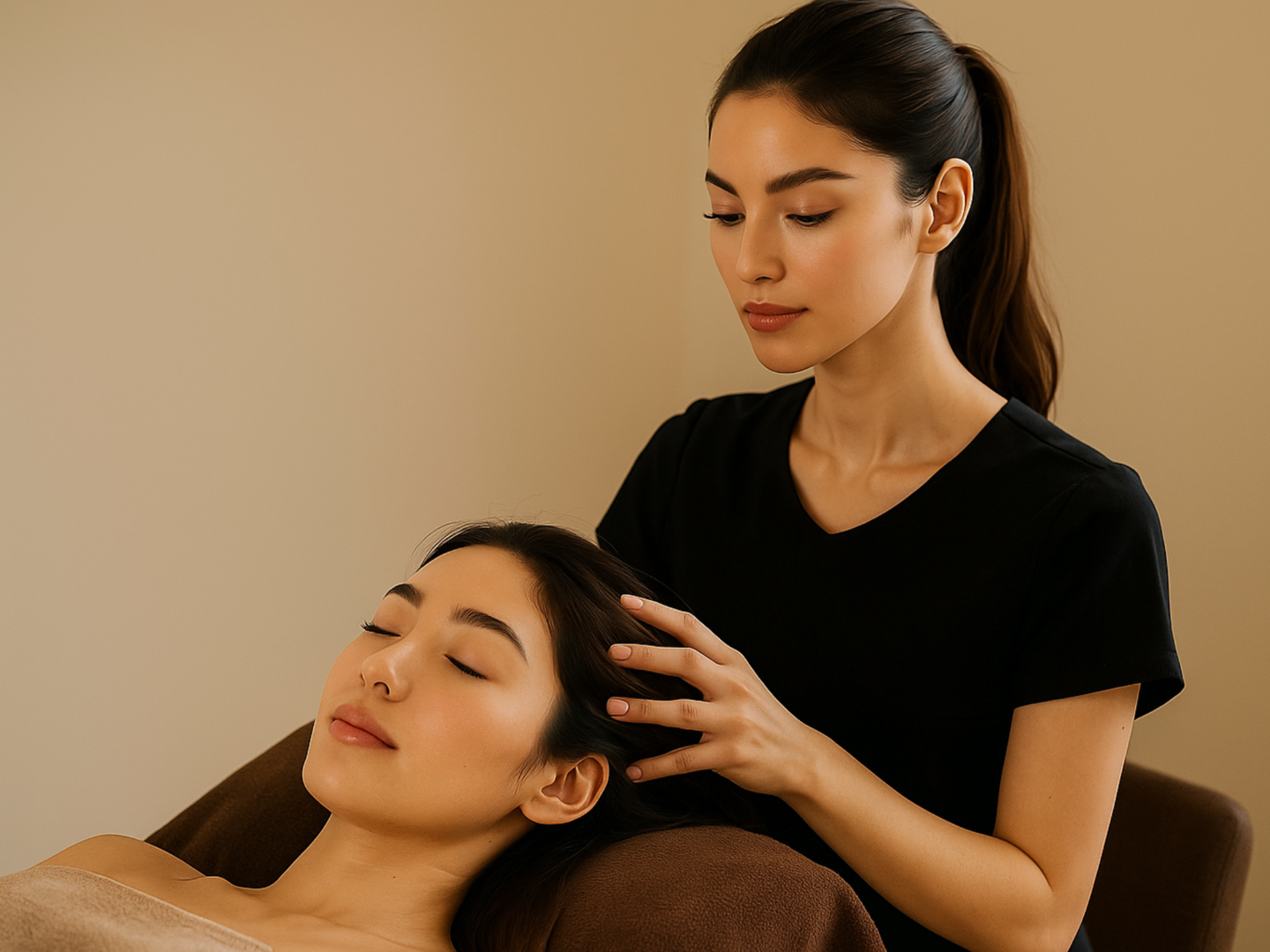 ドライヘッドスパは,水やオイルを使わず,オールハンドで頭部や周辺の筋肉にアプローチします。