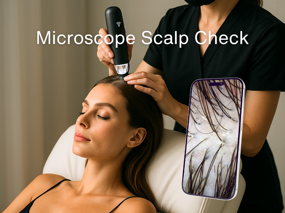 当サロンでは、マイクロスコープで頭皮の状態を確認しながら毛穴を奥まで洗浄する「ハイドラ頭皮洗浄」を実施。さらにドライヘッドスパで血行を促し、自律神経を整えることで、毛根から健康な髪が育つ土台をサポートします。