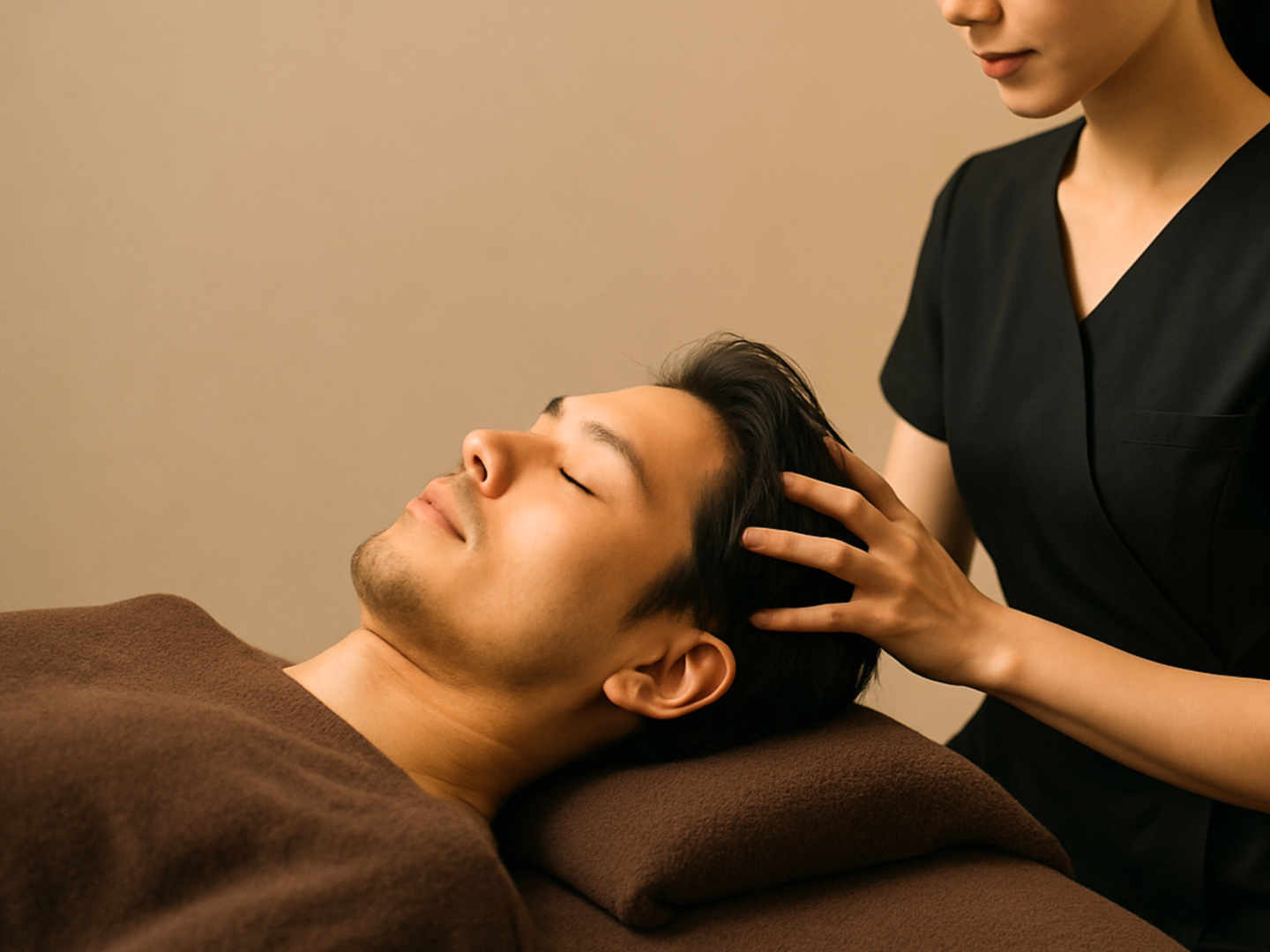 Dry head spa is a type of head spa that originated in Japan and is a treatment to improve the health of both hair and scalp. The term 'dry' indicates that this procedure is performed without the use of water. It can help alleviate headaches, shoulder stiffness, eye strain, and improve sleep quality.