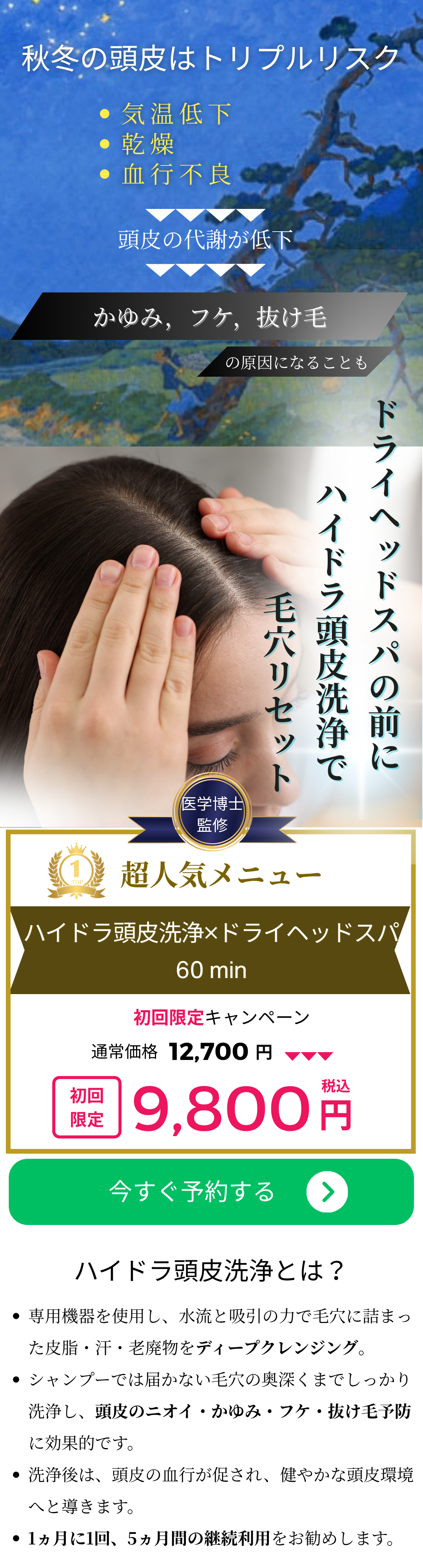 ハイドラ頭皮洗浄 & ドライヘッドスパ
