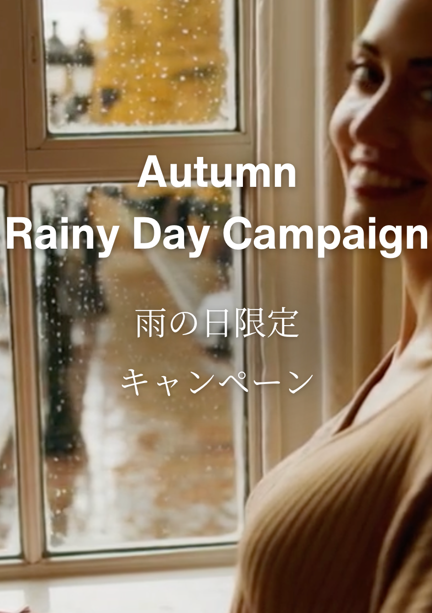 当日の天気予報が「雨」なら、対象メニューが1,000円OFF。 湿気や気圧の変化、なんとなく重だるい日に── 心と体を整える、静かなひとときを。
